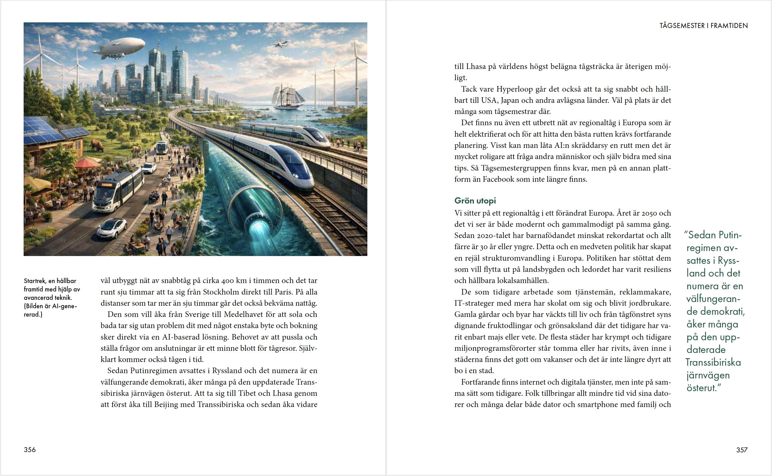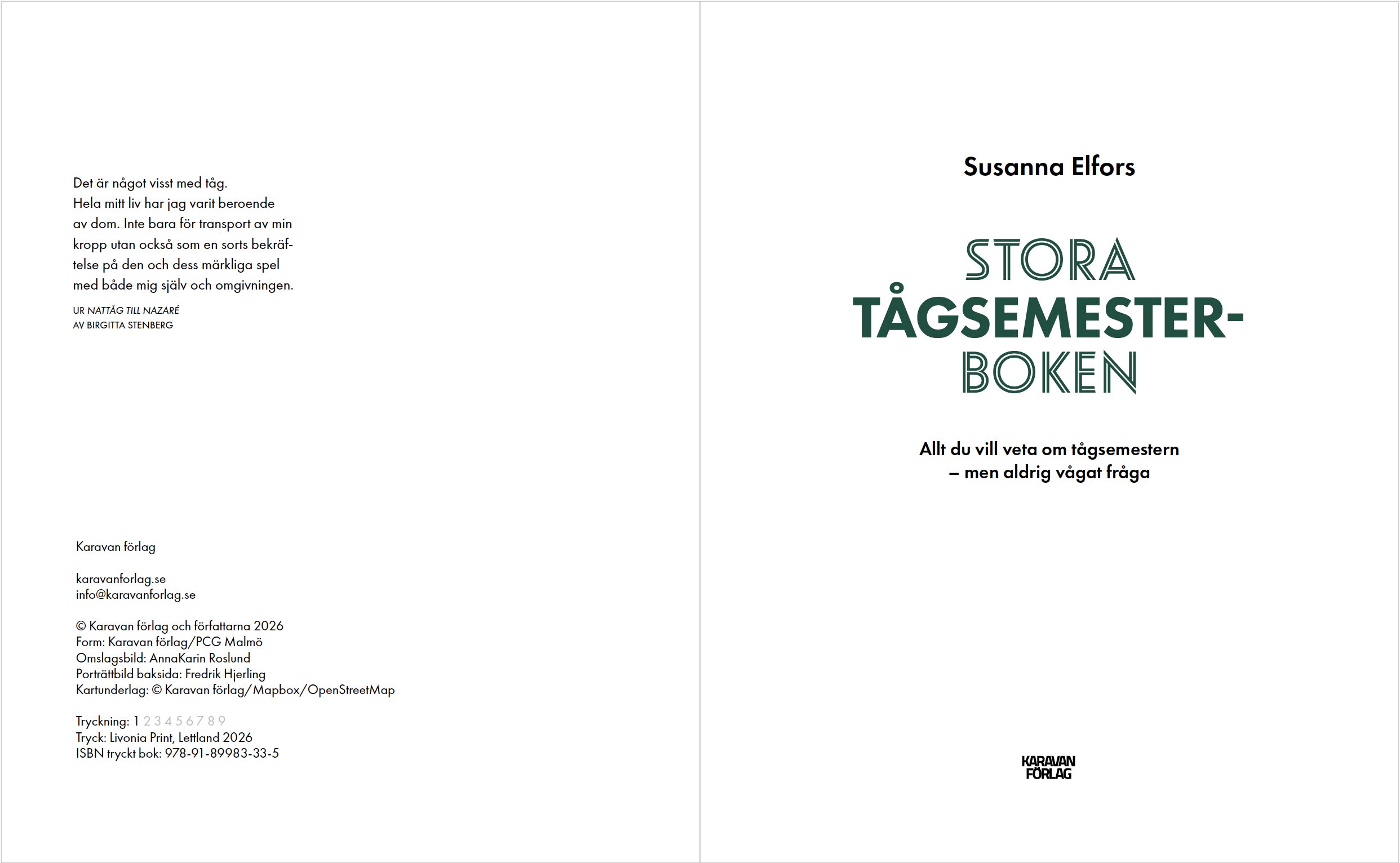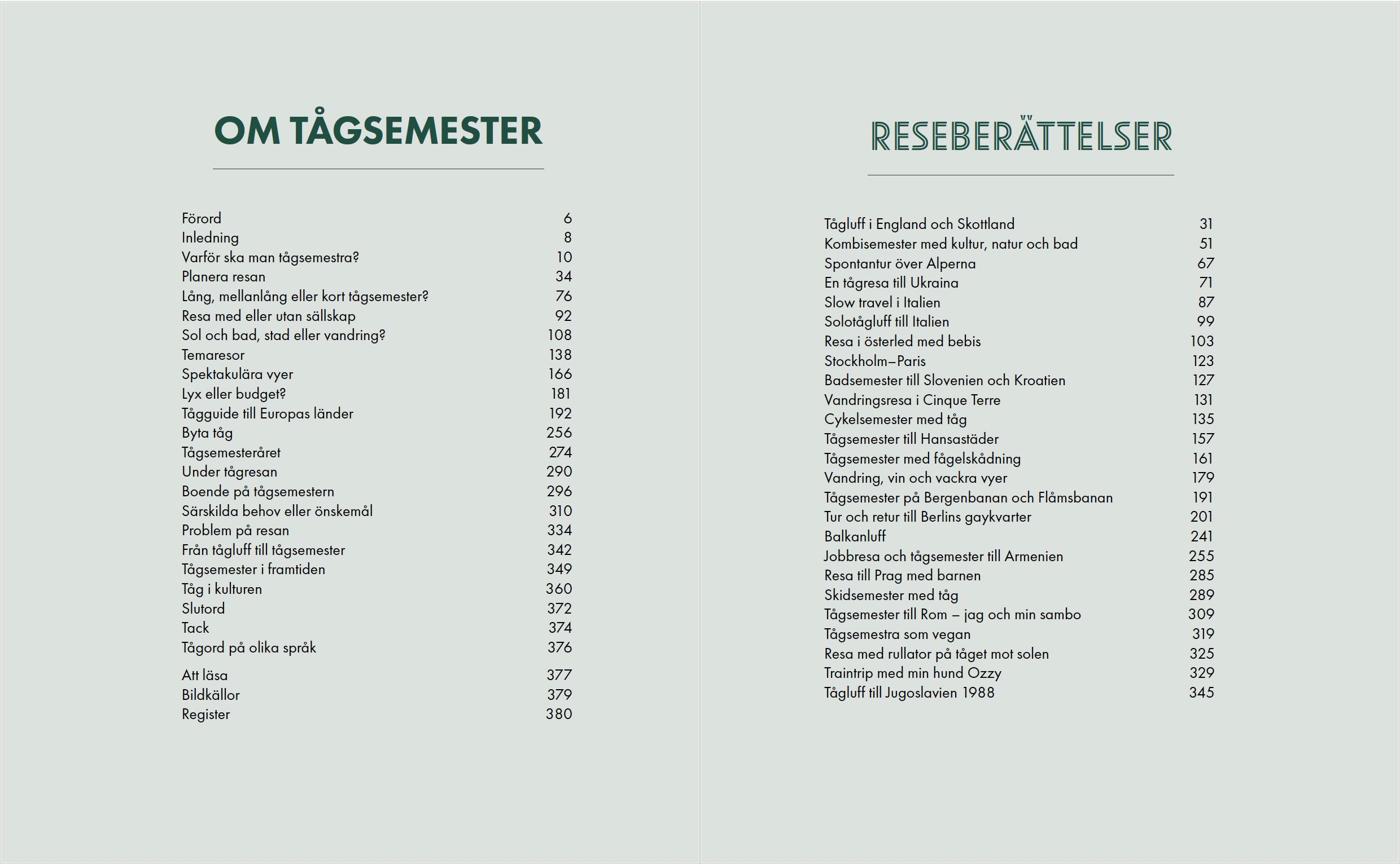 Avslutningsvis diskuteras tågsemesteråret, framtidens tågresor och tågets roll i kulturen. Resultatet är både inspirationsbok och referensverk – en samlad kunskapskälla för alla som vill njuta av tågsemestern.