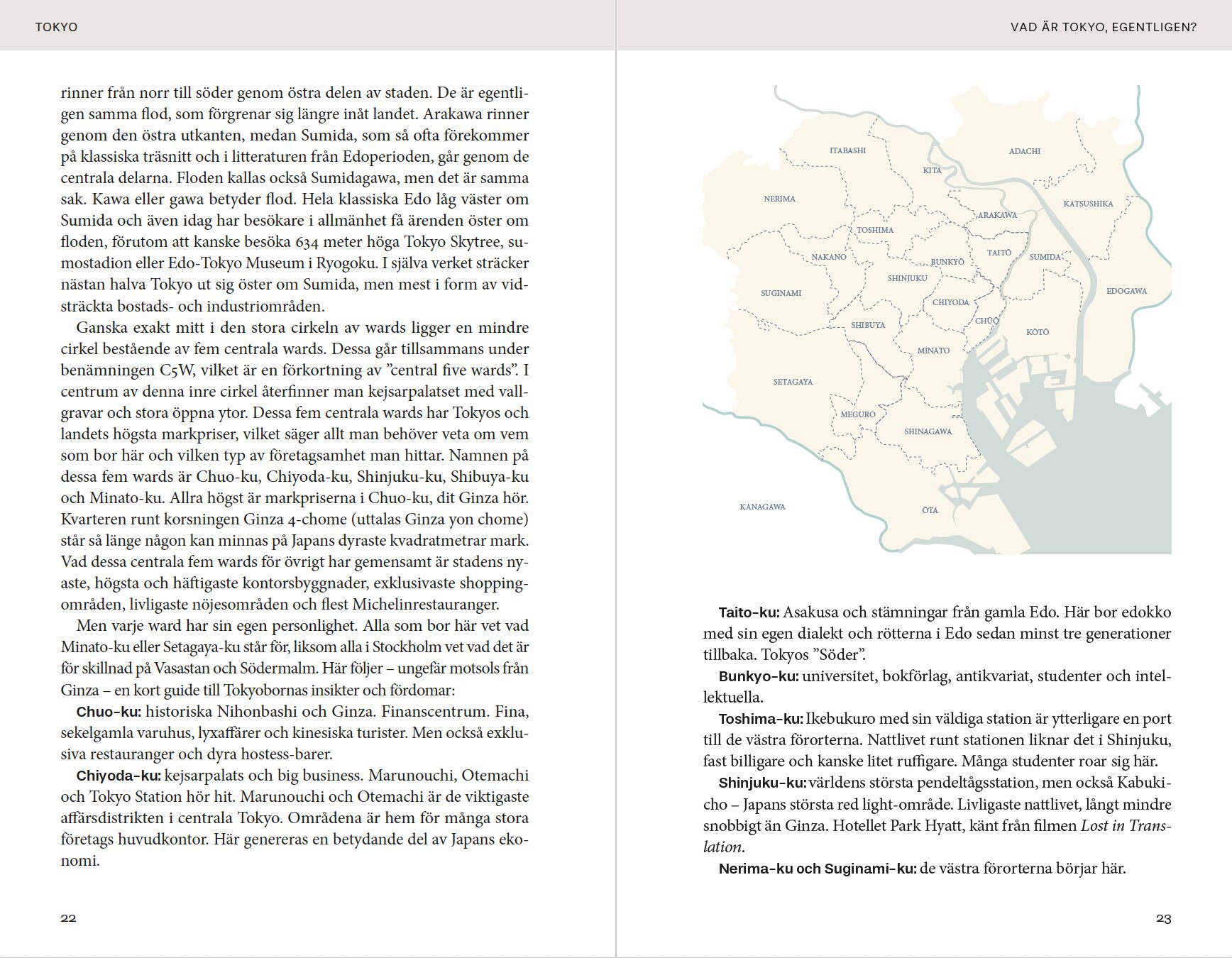 - Dessutom finns förslag på områden för shopping finns givetvis med, liksom ett särskilt kapitel om Tokyo på natten.